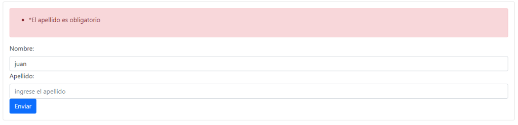 así logramos una validación sencilla de 2 campos required, espero que este ejemplo te sea de utilidad déjame tus comentarios o preguntas